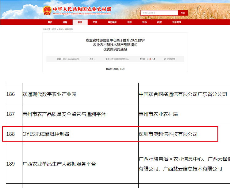 科技創新引領科技興農,奧越信智慧農業又獲佳績!被農業農村部推介為“2021數字農業農村新技術新產品新模式優秀案例”